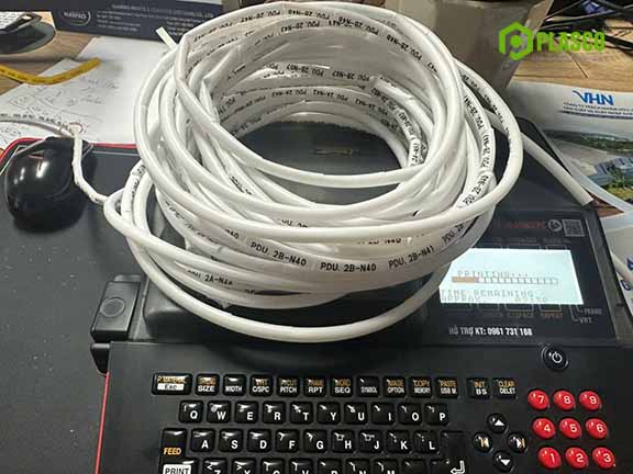 - Dây điện được đánh dấu bằng ống lồng in ký hiệu tạo cảm giác gọn gàng, khoa học và tăng giá trị cho hệ thống điện công nghiệp.