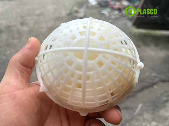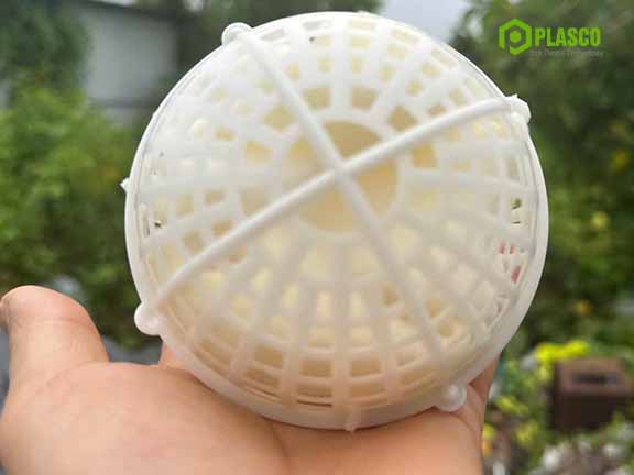 + Giá thể vi sinh dạng cầu (cầu nhựa vi sinh) D100: khi nguyên liệu nhựa PP hoặc nhựa PE được cho khuôn được thiết kế dạng hình tròn, hình cầu có đường kình D=100mm . Giá thể được thiết kế dạng rỗng bên trong với nhiều khe hở nhỏ để tăng bề mặt tiếp xúc cho vi sinh bám dính và phát triển.