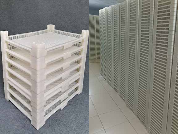 + Khi sử dụng khay sấy nhựa ở phòng sấy, máy sấy thì khay có mức cong vênh phụ thuốc vào vật liệu và thiết kế. khay sấy nhựa chất lượng cao gần như không bị cong vênh trong điều kiện phòng sấy chuẩn kỹ thuật.